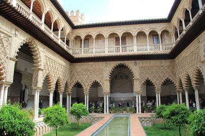 Today we visit the Plaza de Espana where we see the Pavilion built for the Spanish American Fair in the 1920s and take a walk in the beautiful Park of Maria Luisa. We then visit the Seville Archaeological Museum. This contains a magnificent collection of artefacts from Roman Italica as well as material from other nearby sites. The afternoon is devoted to the superb Alcazares Reales, the 14th Century royal palace complex and gardens of Seville. A highlight is the Moorish rooms of the palace of Pedro I. Overnight Seville.