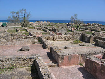 In the morning we visit the sea-side ruins of Kerkouane which are located on Cape Bon, a peninsula east of Tunis. Kerkouane is the best preserved ancient Punic city in the world and is justly famous for the 6th-4th Century BC Punic houses with some of the earliest mosaic floors in the Mediterranean. We also tour the local archaeological museum at Kerkouane. After lunch we head north to see the ancient Punic quarries near Haouaria. Overnight Tunis.