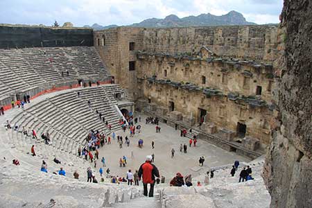 Today we explore two wonderful ancient sites located to the east of Antalya. Perge is an ancient Roman city which includes a magnificent theatre, stadium, walls, agora and bath complex. The colonnaded streets are particularly well preserved. In the afternoon we visit the theatre of Aspendos, one of the best preserved theatre from antiquity. Overnight Antalya.