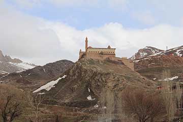 We head south to see the ruins of the Ishak Pasha Seray, a magnificent 18th Century palace situated on a mountain pass with views of Mt Ararat. We spend a few days in Van where we explore the Urartian ruins of Tushpa (9th Century BC). We also see the ancient ruins of Cavustepe and the Kurdish castle of Hosap. We travel along the southern shore of Lake Van to visit the early medieaval church of the Holy Cross on Akdamar Island. We then travel south to Diyarbakir, dramatically located on the Tigris River, where we explore the Great Mosque, the city walls and the local markets.