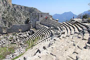 We head into the rugged mountains behind Antalya to visit the Karain Cave. Archaeologists have discovered some of the earliest evidence of humans in Turkey. We then visit the stunning Hellenistic and Roman city of Termessos. This mountain top city has remains of many temples, gymnasium, council chambers and a spectacularly located theatre with views over the local valley. The necropolis contains numerous sarcophagi which emerge from a woodland setting. Overnight Antalya.