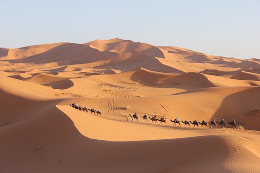 Today we head south through the Zis Valley, a scenic river valley dotted with villages and date palms. We stop to see a fossil museum. Our journey then takes us to Merzouga on the edge of the Erg Chebbi Desert. We take a camel ride into the Sand Sea where some of the dunes are over 150m high. Overnight Merzouga.