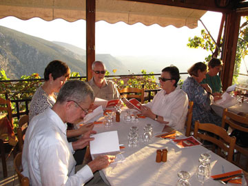 You might like to bring some snacks with you, such as muesli bars, if you require a regular sugar fix at 11am, although we are rarely far from a café. For lunch we normally stop at a small café and have a sandwich, spanakopite, pasta, pizza or salad. This should cost about $15-20. The evening meal is usually more substantial and we normally visit a restaurant. This meal may be more expensive and can vary from $20-50 dollars per person depending on what you eat. Greece offers a wide range of eateries from inexpensive cafes to five star silver service restaurants in luxurious surroundings. The choice is up to you!