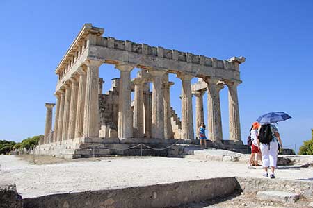 On Tuesday 25th September we visited the beautiful island of Aegina, located to the south of Athens in the Saronic Gulf. We caught the morning ferry from Piraeus Harbour to the island. We explored the ruins of the fortified Bronze Age city near the port, including the temple of Apollo and then made our way by bus across the island to see the beautiful Temple of Aphaia. This superb Doric shrine is located on a high point overlooking the sea and is very well preserved.