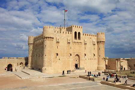 We travelled from Cairo to Alexandria next morning - the desert road connecting the two cities is good and makes it a fast trip. We explored the 15th Century Fort Qaytbey which was built on the ruins of the ancient Pharos Lighthouse - many of the stones are actually part of the ancient structure. We had lunch in the Triannon Café (an Alexandrian institution) and then saw the Roman catacombs with their remarkable representations of Anubis. In the afternoon we went to the New Alexandria Library, an impressive piece of 20th Century architecture. We had a nice sunset from our hotel terrace where we had dinner.