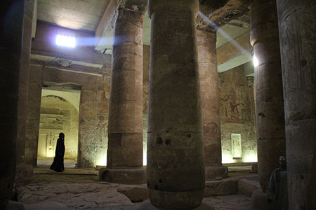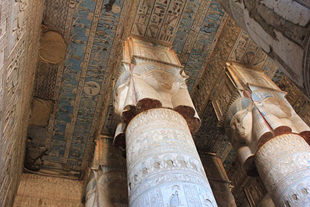 The next day we went to Abydos, an archaeological site north of Luxor. The sky was very clear and we had a great view of the towering cliffs near Nag Hamadi. We had a coffee at the new tourist resort at Abydos before we went to see the magnificent memorial temple of Sety I. The temple was very quiet and we were the only tourists during our visit - the only thing we could hear was the birdsong! We had lunch at the resort (sadly empty due to lack of tourists) and then drove to the ancient site of Dendera to see the Temple of Hathor. Once again we were the only tourists in the temple! It's a very bad situation for Egypt which is clearly having its worst tourist season for quite a while.