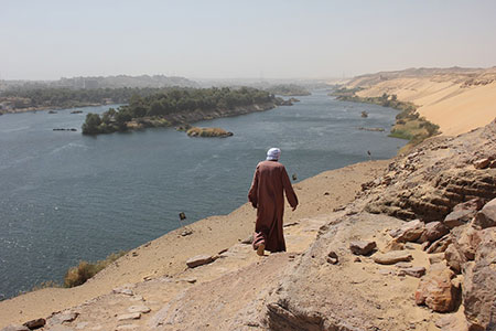 The following morning there was a magical sunrise and the cruise boat continued on after breakfast - we arrived at Abu Simbel mid-morning to the stirring sounds of Vangelis. We anchored and went to see the two temples. Because we were there in the middle of the day we avoided the day trippers and literally had the Abu Simbel temples to ourselves - this meant I could take lots of photos inside the temple, a first! There was some free time to relax in the afternoon and some of the group went to Abu Simbel for the Sound and Light Show in the evening. It was a special occasion because it was the period (only twice a year) when the light of the morning sun shines directly into the sanctuary. The following morning (22nd February) most of us went back for the sunrise and by sharpening elbows we managed to get to the head of the queue. We saw the rays of first light strike the sanctuary and it was magical! It was surprising well managed by the Egyptian authorities. We then drove back to Aswan and after a late lunch overlooking the Nile we checked into our hotel where we would stay for 2 nights.