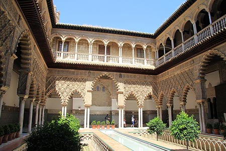 On the 14th May we walked through town to the stunning Plaza de Espana, a pavilion built for the Spanish American Fair in the 1920 (but better known to some of us as Queen Amidala's Palace in Star Wars Episode II). We walked through the beautiful park of Maria Luisa and visited the Archaeological Museum which has a very good collection of Roman artefacts. In the afternoon we visited the Alcazares Reales, the Mudejar (Muslim style) palace of King Pedro II - it contains magnificent Islamic rooms. A free day in Seville was easily spent wandering through the old quarter and visiting art galleries.