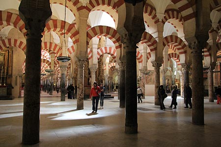 On the 18th of May we explored the many wonderful sights of Ronda. This is one of the famous hill towns of Andalusia and preserves a number of Moorish buildings, most famously the Arab Baths which we reached through a country path amongst beautiful spring flowers. The magnificent 18th Century Bridge across the Tajo Gorge is mesmerising. I also enjoy visiting the Museum in the Mondragon House which has a good collection of artefacts from the local area. The following day we continued our journey, stopping in the mediaeval town of Antequera to see the fantastic megalithic dolmen tombs, built in the 3rd Millennium BC. We arrived in Cordoba in the afternoon and went for a walk around the Great Mosque. Built in the 8th Century it dominates the old quarter - our hotel was directly next to the mosque.