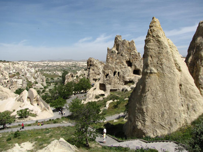 A day was spent exploring some of the wonderful landscapes of Cappadocia - in the morning we saw the site of Goreme which is famous for its remarkable underground painted churches carved from the volcanic pumice. We then travelled by bus to the ruins of the ancient settlement of Zelve, home to a monastic community in the Middle Ages. The inhabitants cut their houses and the monasteries from the pumice and protected their dwellings by movable boulders. The landscape is like something out of Tolkien’s ‘Lord of the Rings’