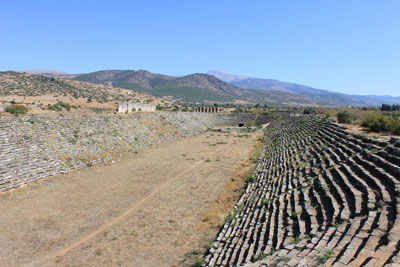 The following day was our free day - most of the group decided to take the ferry over to the Greek island of Samos for the day. I arranged a taxi to go to the ancient Lydian capital of Sardis, located to the east of Izmir. The site includes impressive remains from the Roman era and a beautiful Temple of Artemis located in the nearby river valley. I also explored some of the royal tomb mounds which dot the plain in front of the city - I climbed to the top of one of them for a superb view!